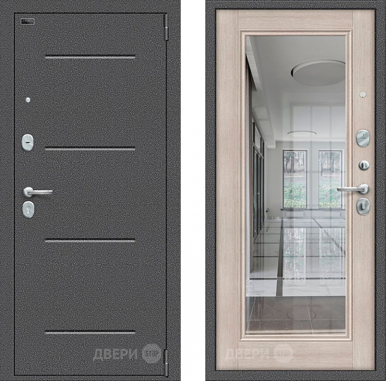 Входная металлическая Дверь Bravo Porta S-2 104/П61 с зеркалом Капучино в Электростали 860х2050 мм