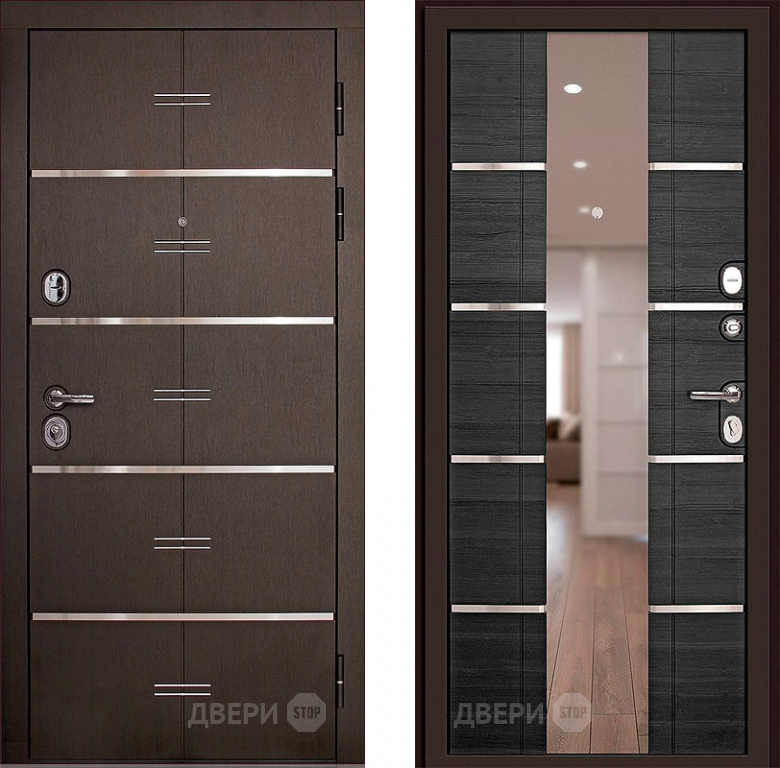 Входная металлическая Дверь (Дверной Континент) Савона с зеркалом Венге в Электростали 860х2050 мм