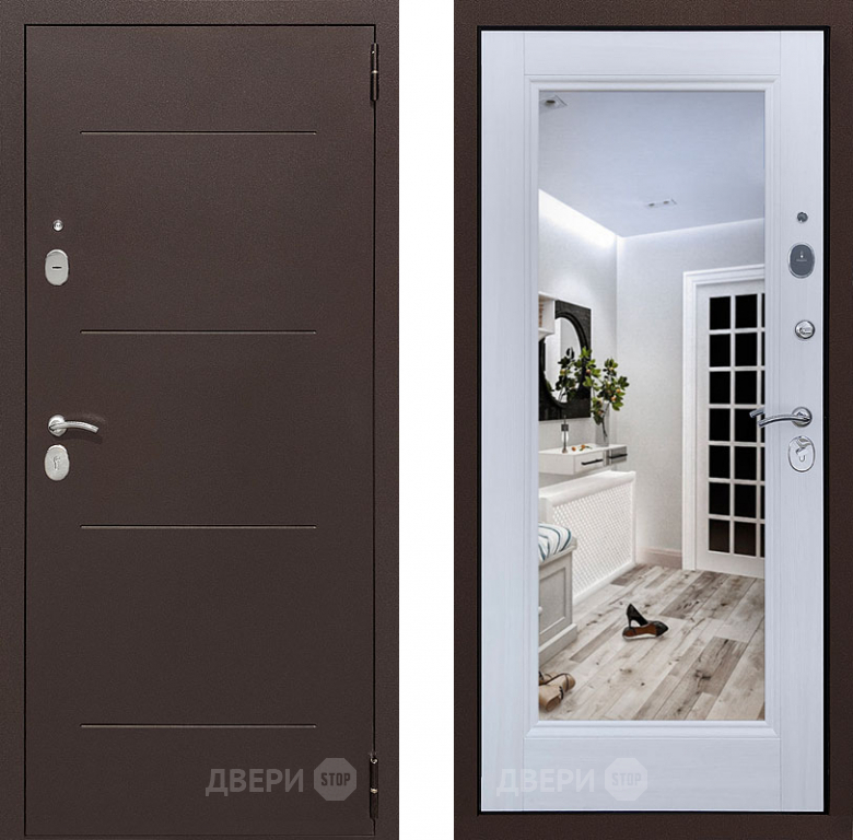 Входная металлическая Дверь Престиж 100 с зеркалом Медь/Лиственница белая в Электростали 860х2050 мм