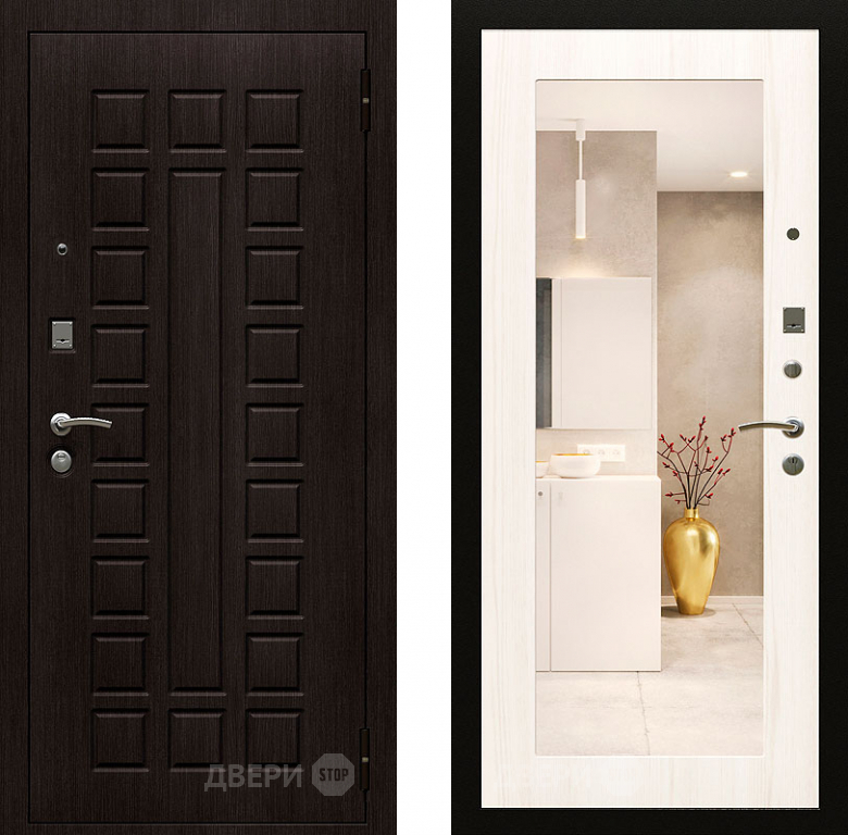 Входная металлическая Дверь Райтвер Сенат-лайф с зеркалом Беленый Дуб в Электростали 860х2050 мм