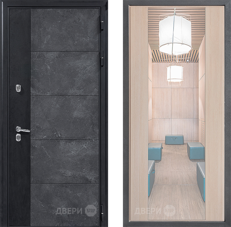 Входная Дверь Дверной континент ДК-15 Бетон ТЕРМО ФЛЗ-1 Зеркало Капучино 860x2050 мм