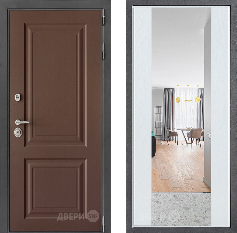 Входная Дверь Дверной континент ДК-3/729 ФЛЗ-1 Зеркало Белое дерево 860x2050 мм