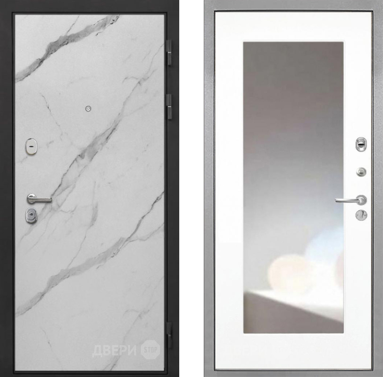 Входная Дверь Интекрон (INTECRON) Гектор Мрамор Арктик ФЛЗ-120-М Зеркало Белый матовый 860x2050 мм
