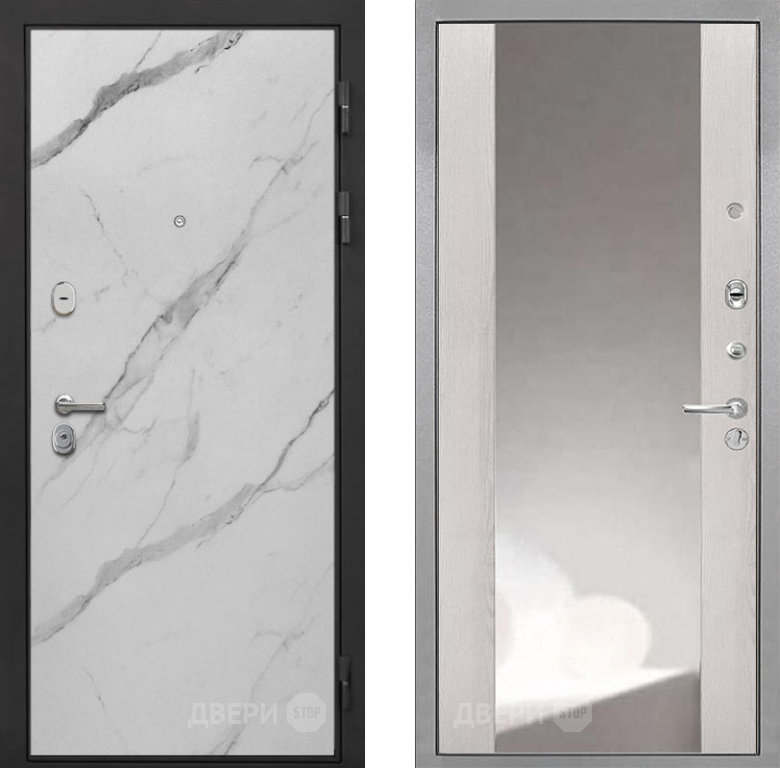 Входная Дверь Интекрон (INTECRON) Гектор Мрамор Арктик ФЛЗ-516 Зеркало Сосна белая 860x2050 мм
