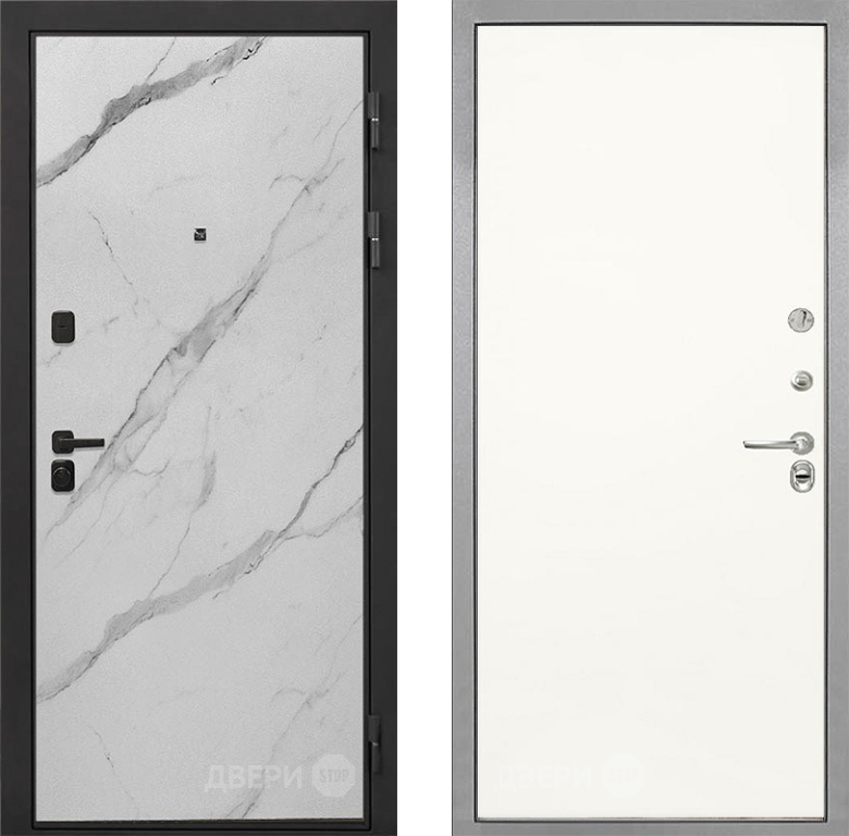 Входная Дверь Интекрон (INTECRON) Профит Black Мрамор Арктик Гладкая Слоновая кость 960x2050 мм