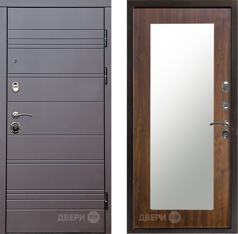 Входная Дверь Престиж Линия Браун Зеркло Пастораль Дуб 860x2050 мм