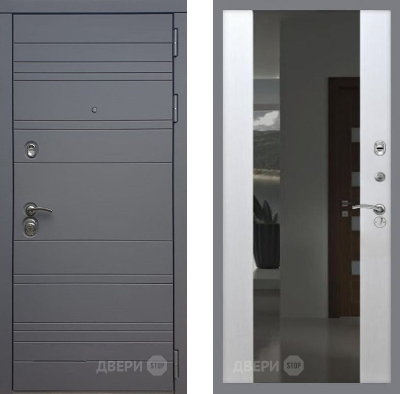 Входная Дверь Рекс (REX) 14 силк титан СБ-16 с Зеркалом Лиственница беж 860x2050 мм