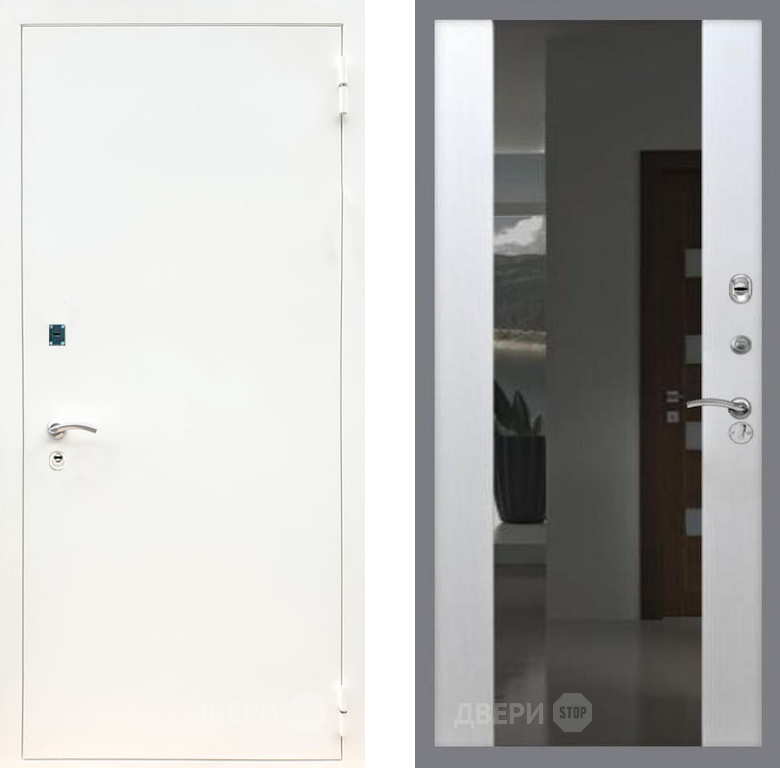 Входная Дверь Рекс (REX) 1А Белая шагрень СБ-16 с Зеркалом Лиственница беж 860x2050 мм