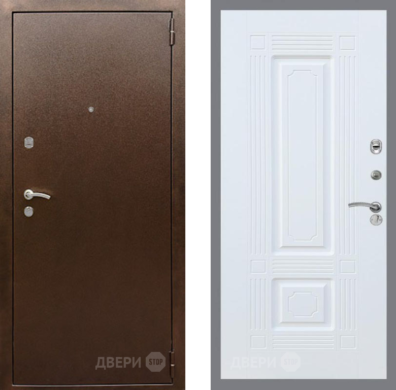 Входная Дверь Рекс (REX) 1А Медный Антик FL-2 Силк Сноу 860x2050 мм