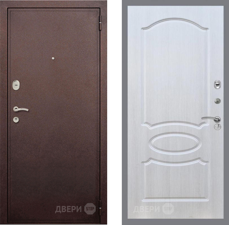 Входная Дверь Рекс (REX) 2 Медный Антик FL-128 Лиственница беж 860x2050 мм