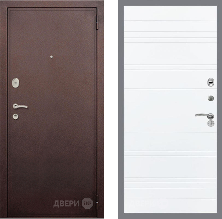 Входная Дверь Рекс (REX) 2 Медный Антик Line Силк Сноу 860x2050 мм