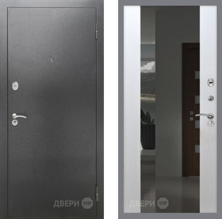 Входная Дверь Рекс (REX) 2А Серебро Антик СБ-16 с Зеркалом Лиственница беж 860x2050 мм