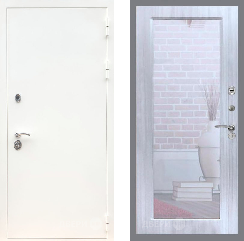 Входная Дверь Рекс (REX) 5 Белая Шагрень Зеркало Пастораль Сандал белый 960x2050 мм