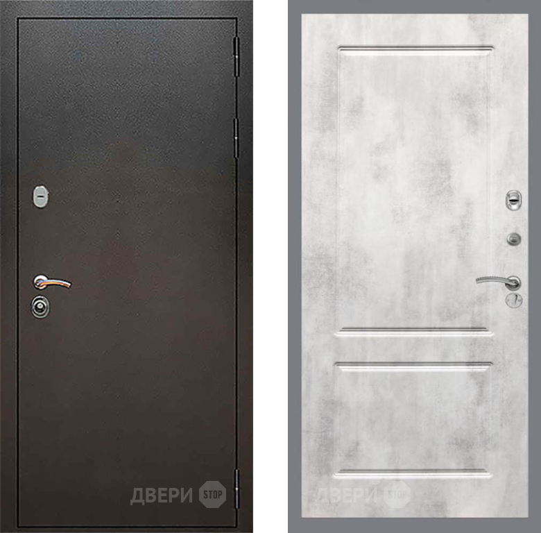 Входная Дверь Рекс (REX) 5 Серебро Антик FL-117 Бетон светлый 860x2050 мм