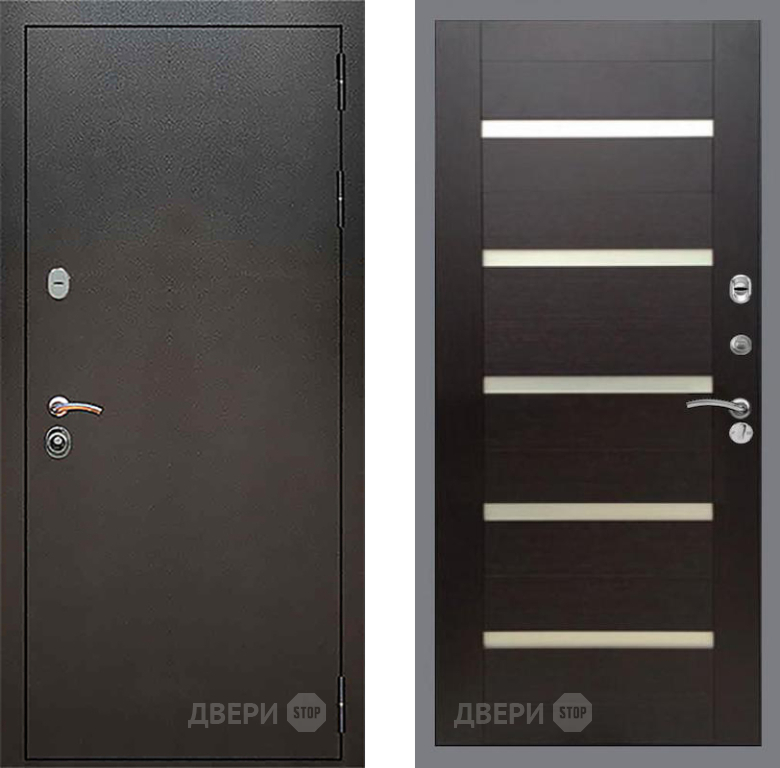 Входная Дверь Рекс (REX) 5 Серебро Антик СБ-14 стекло белое венге поперечный 960x2050 мм