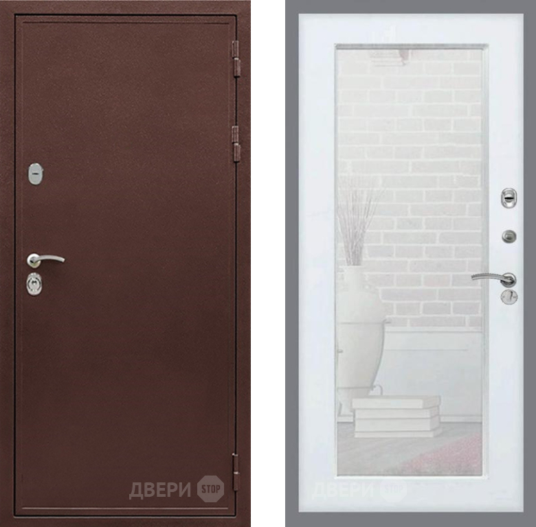 Входная Дверь Рекс (REX) 5А Зеркало Пастораль Белый ясень 860x2050 мм