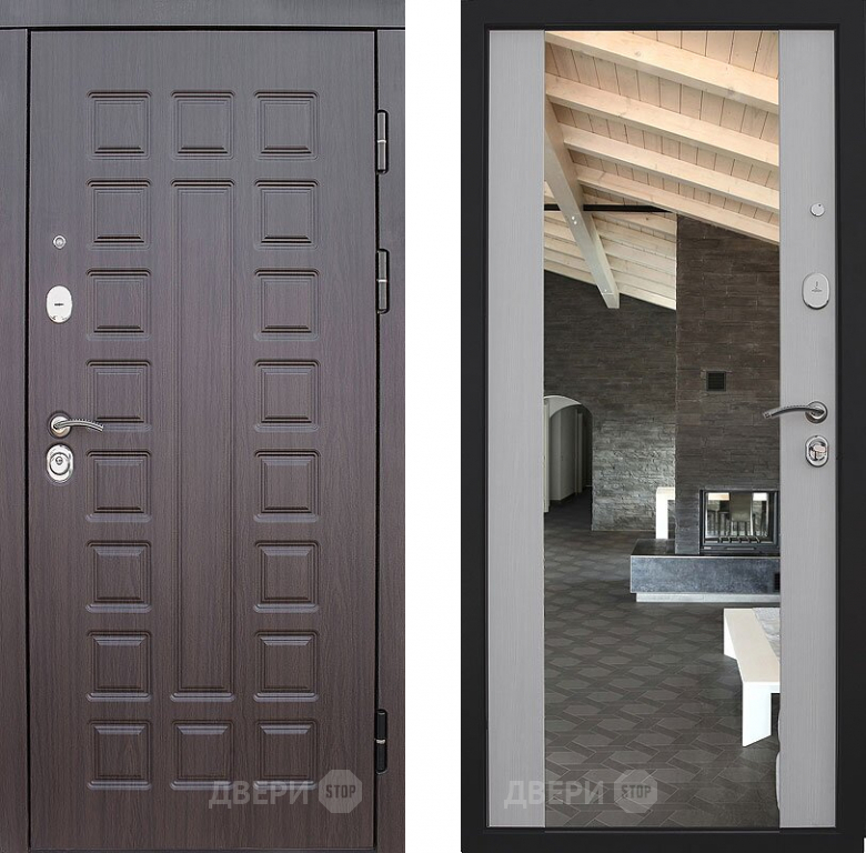 Входная металлическая Дверь S01 2К Зеркало Лиственница белая в Электростали 860х2050 мм