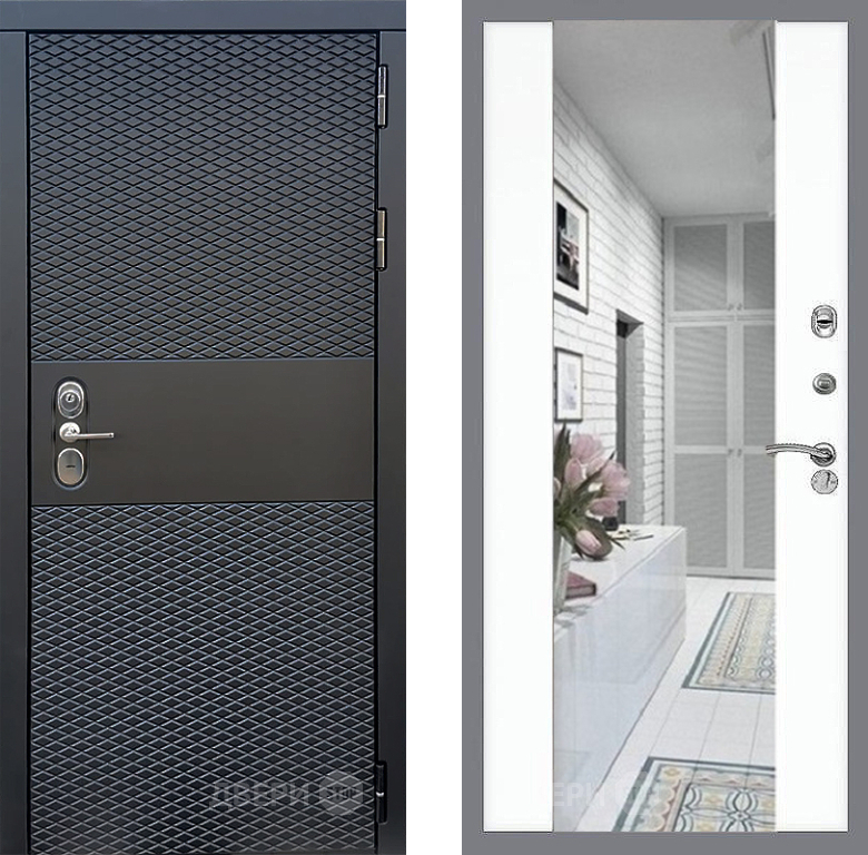 Входная Дверь Стоп БЛЭК CISA Зеркало СБ-16 Силк Сноу 860x2050 мм