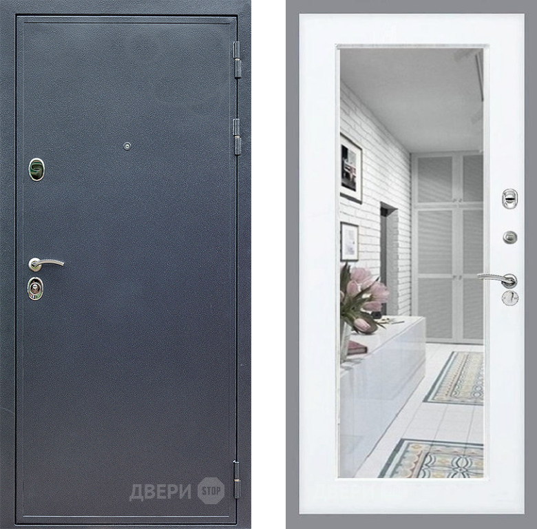 Входная Дверь Стоп СИЛЬВЕР Зеркало Силк Сноу 960x2050 мм