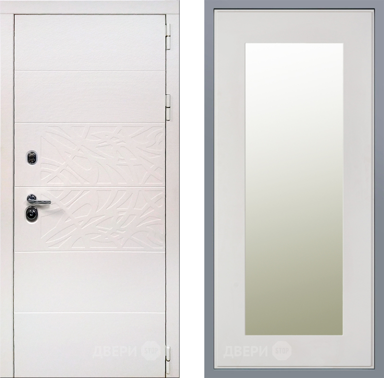 Входная Дверь Заводские двери Дэко Вайт Зеркало Модерн Белый софт 860x2050 мм