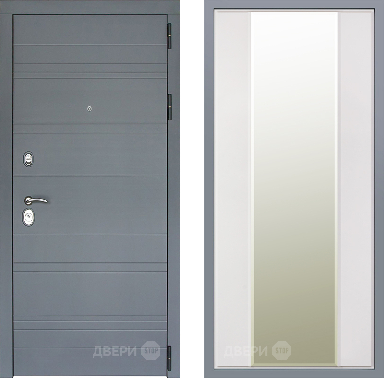 Входная Дверь Заводские двери Лира Софт графит Зеркало Макси Белый матовый 860x2050 мм