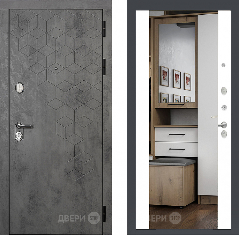 Входная металлическая Райтвер Бетон 1501 с зеркалом Белый матовый в Электростали 860х2050 мм